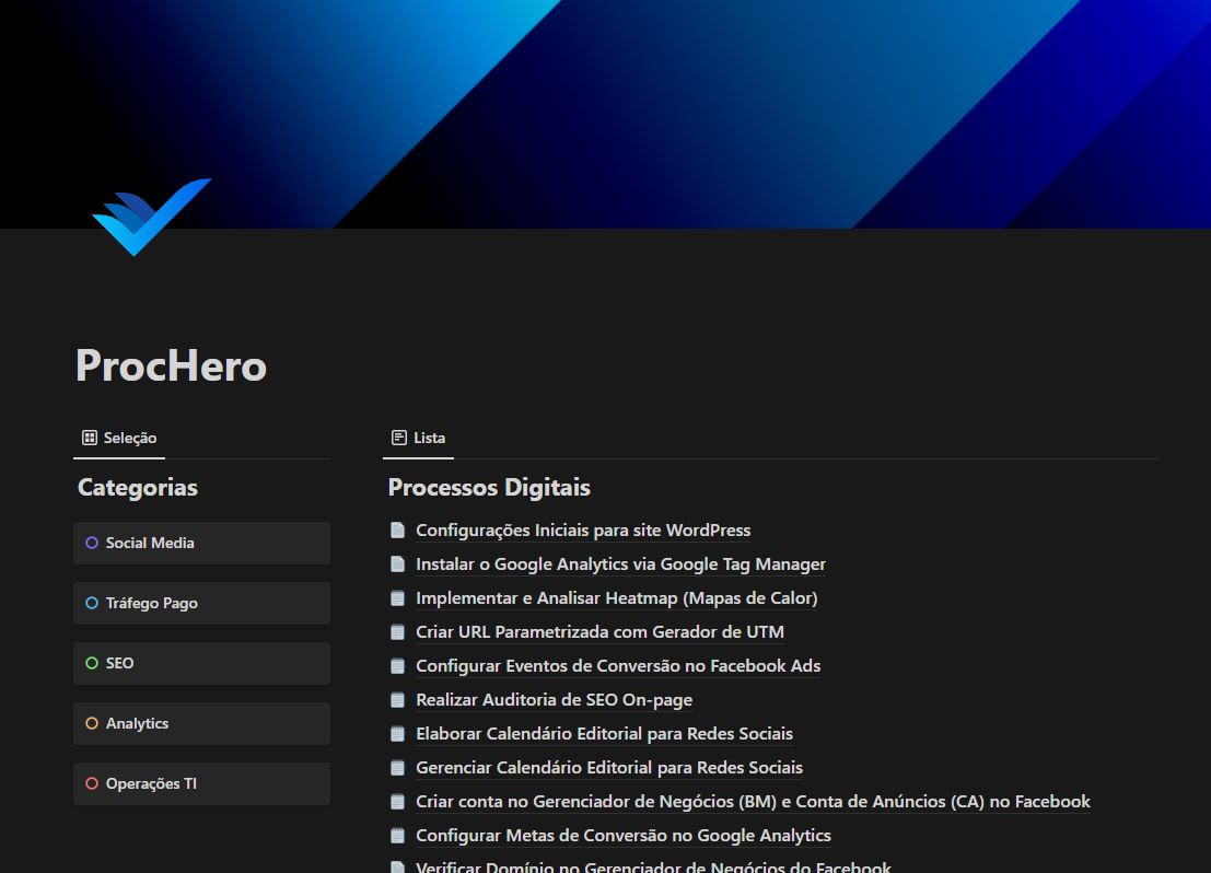 O ProcHero é uma coleção de processos do cotidiano de uma agência de marketing digital